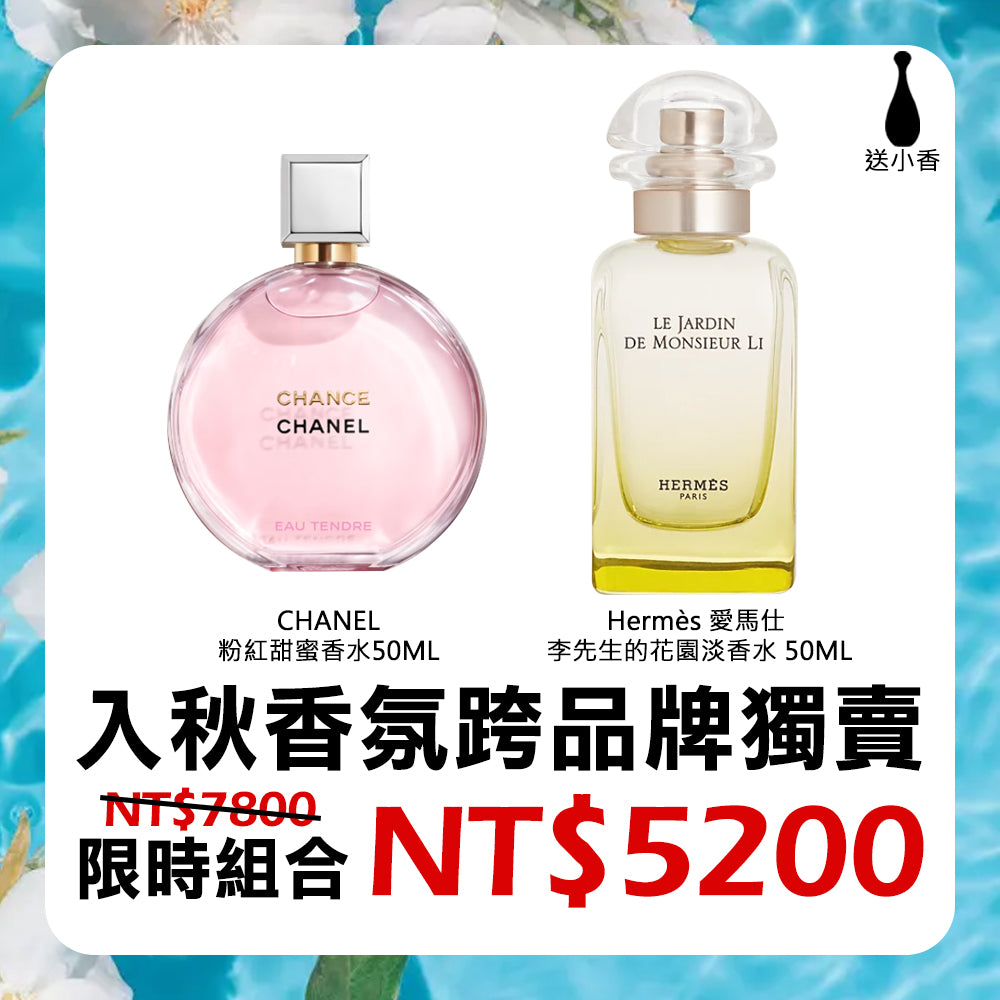 入秋香氛跨品牌獨賣 - CHANEL粉紅甜蜜香水 + Hermès愛馬仕李先生的花園淡香水 + 送小香任選