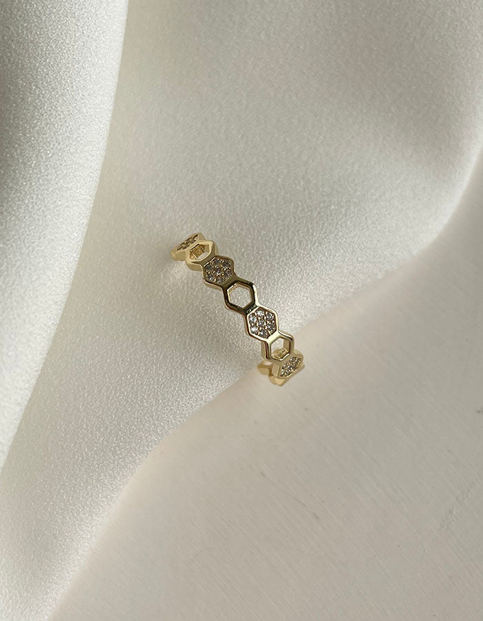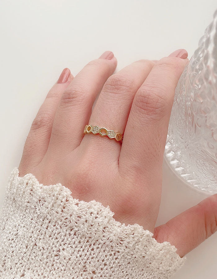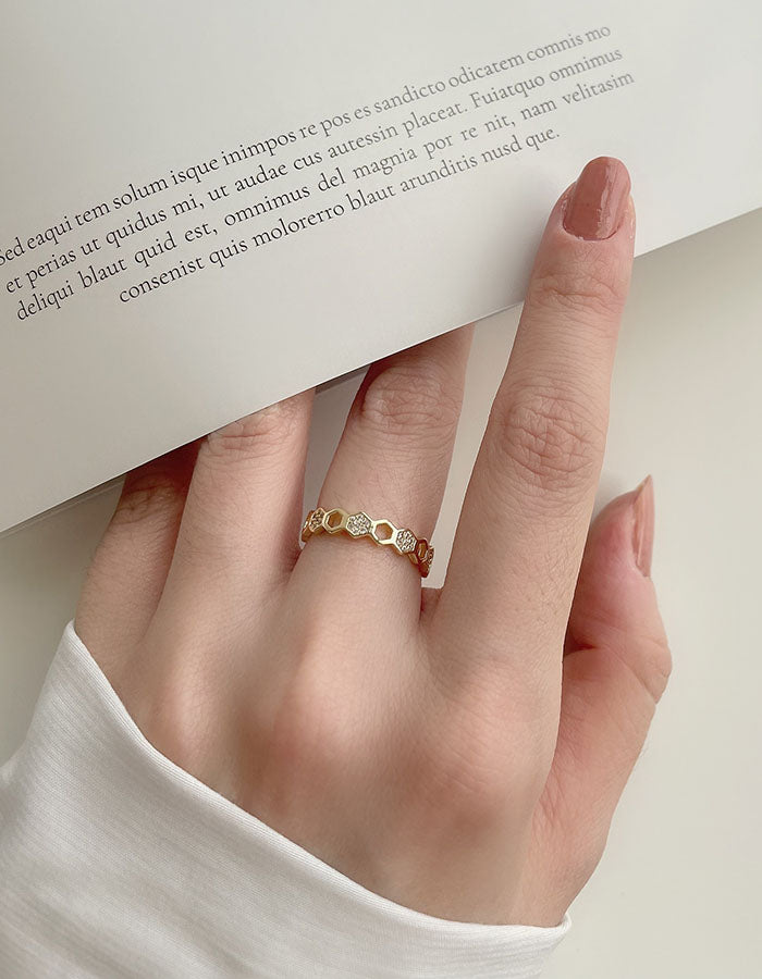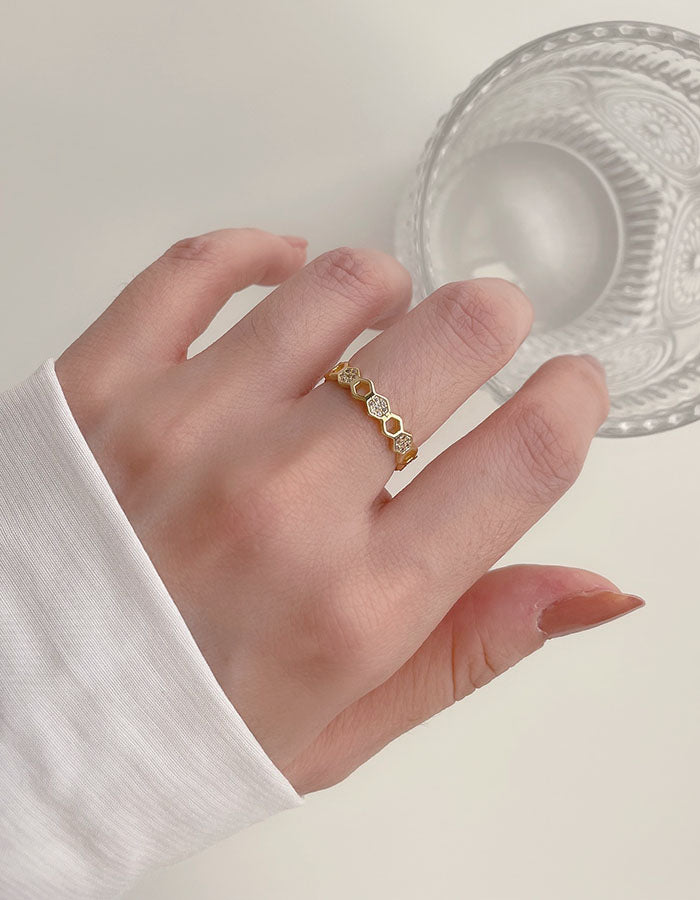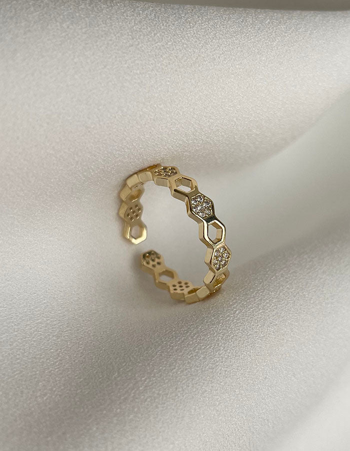 幾何鏤空造型鑲鑽戒指