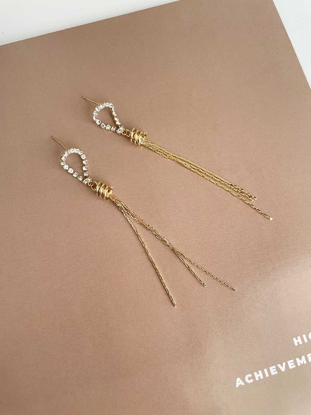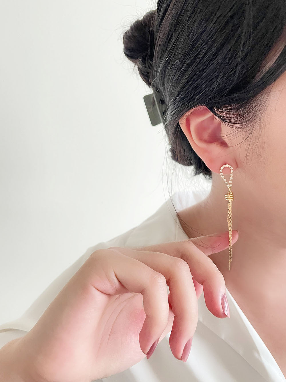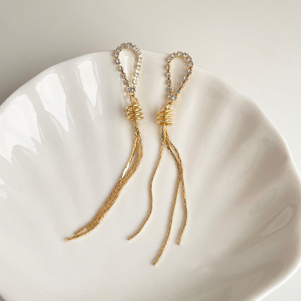 水鑽圓環流蘇垂墜耳環 - 925純銀針