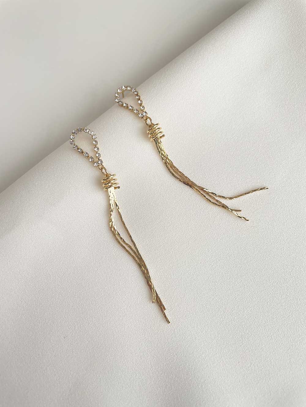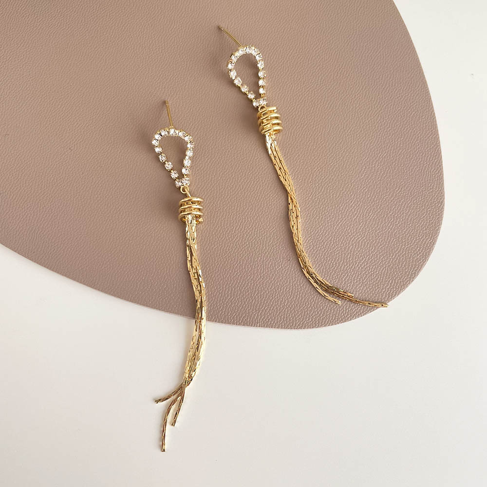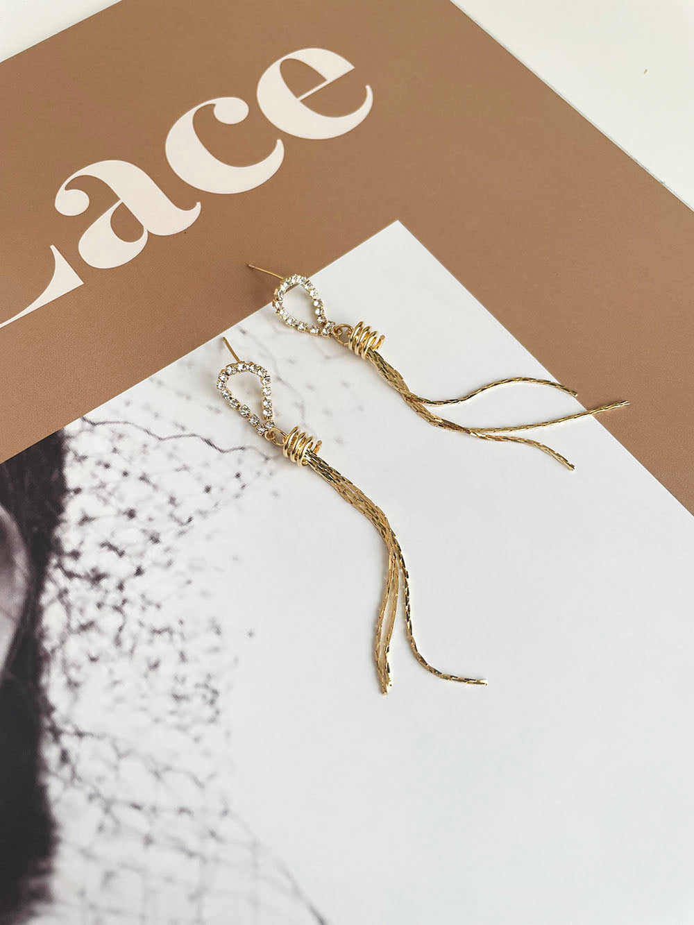 水鑽圓環流蘇垂墜耳環 - 925純銀針