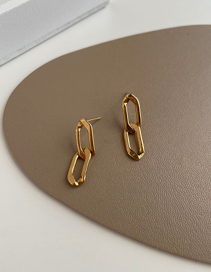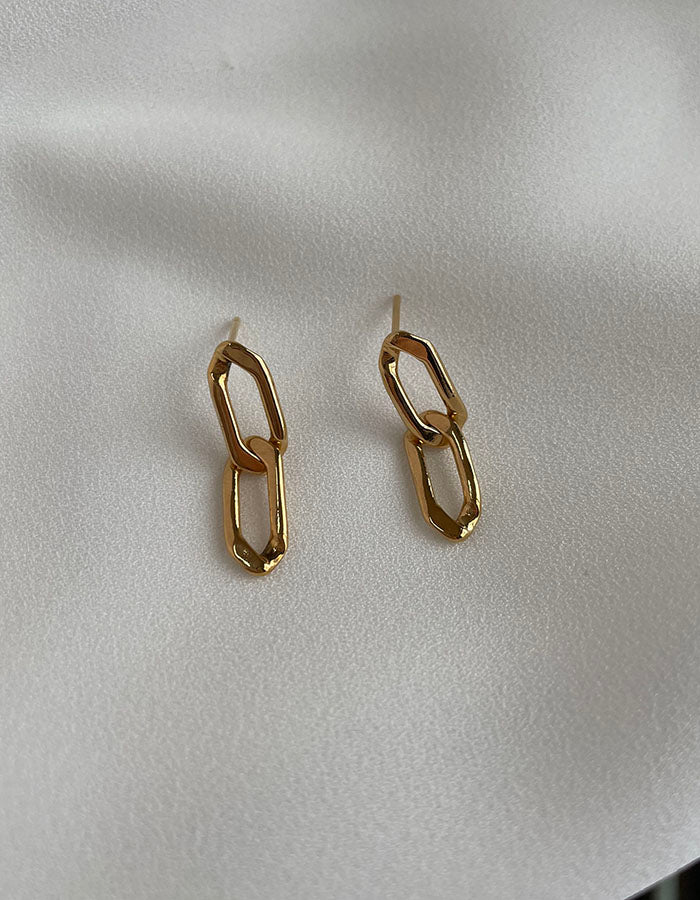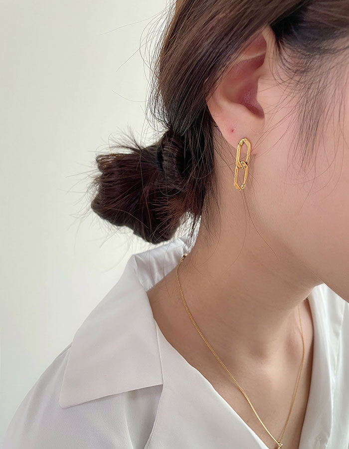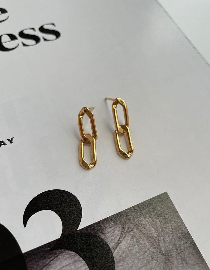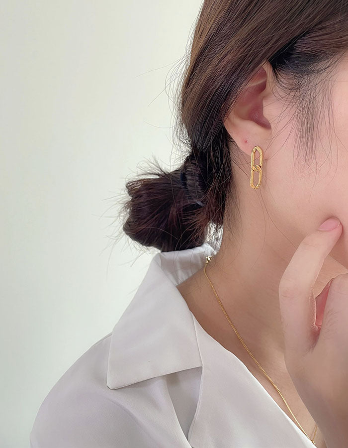 簡約鎖鏈耳環 - 短款 - 925純銀針