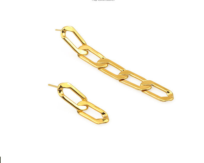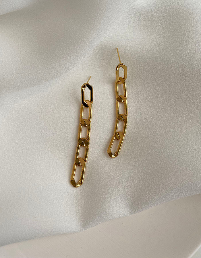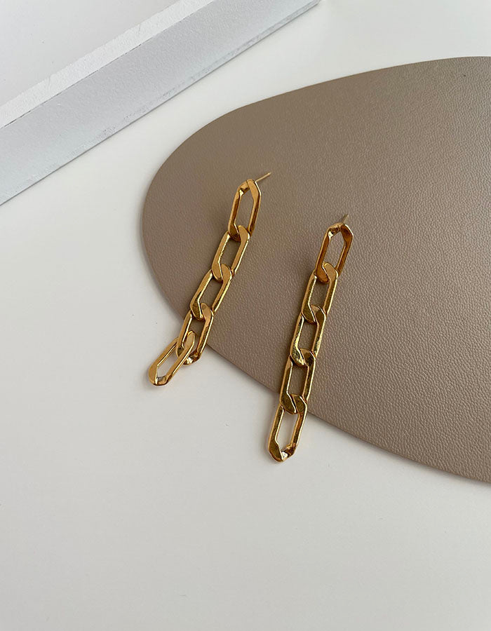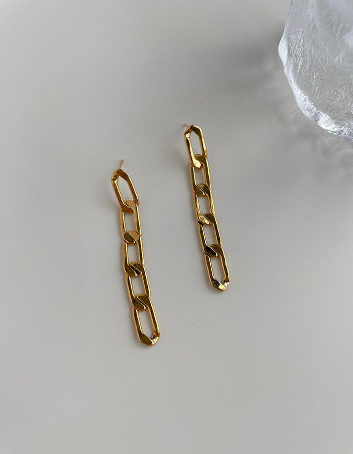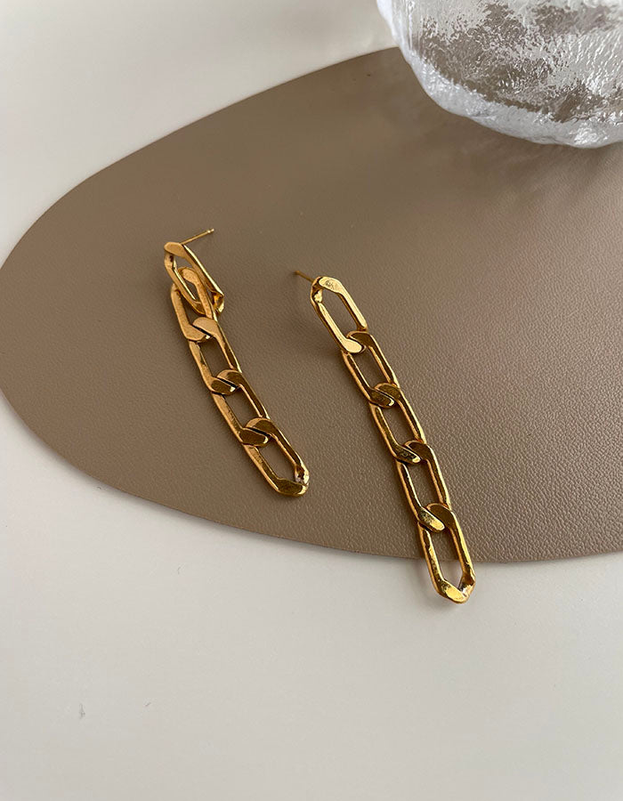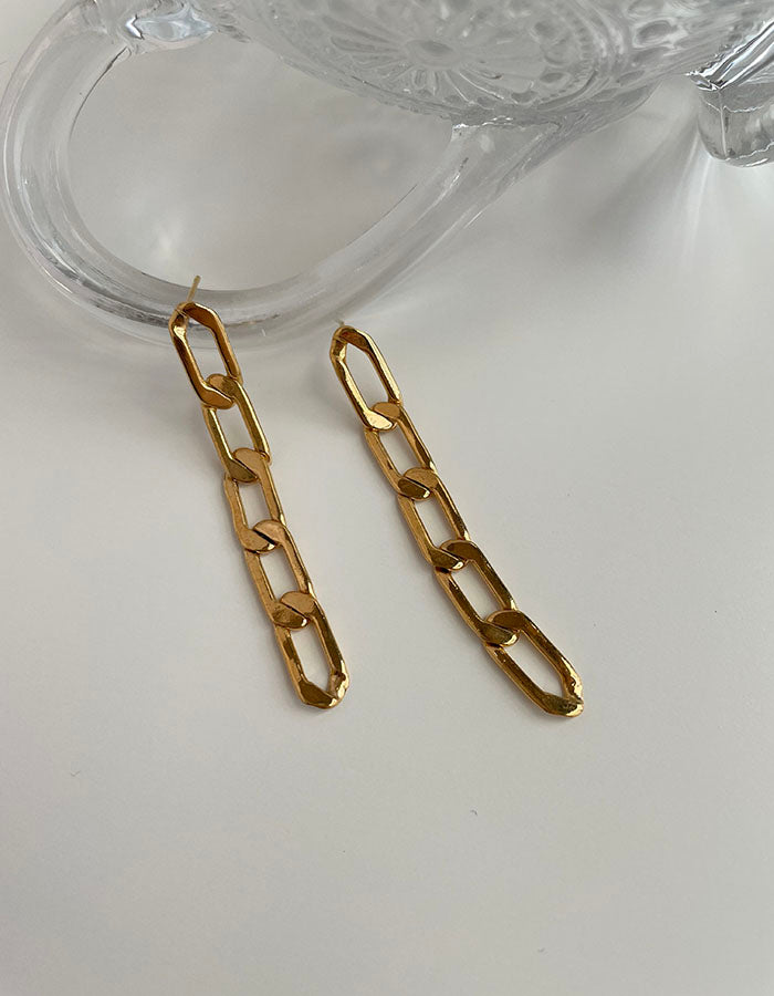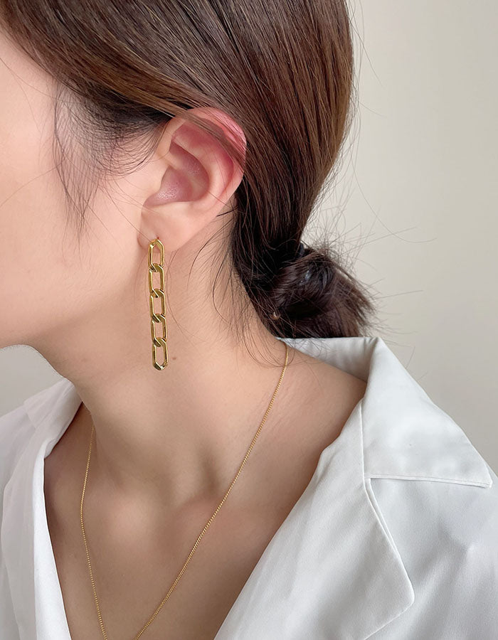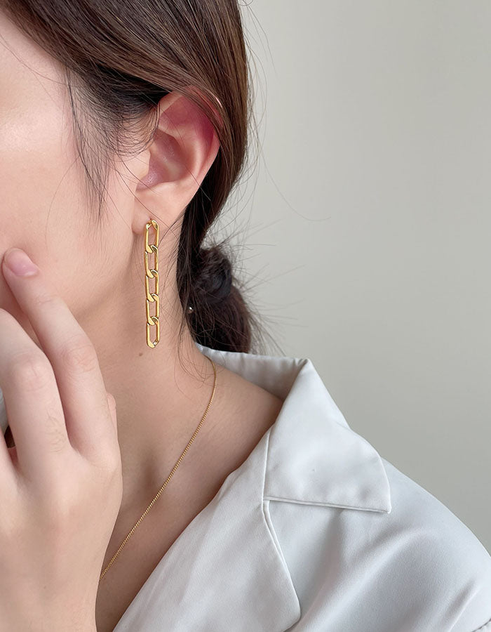簡約鎖鏈耳環 - 長款 - 925純銀針