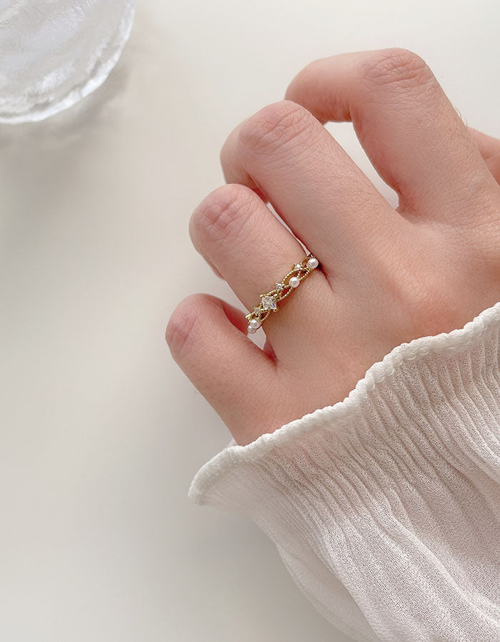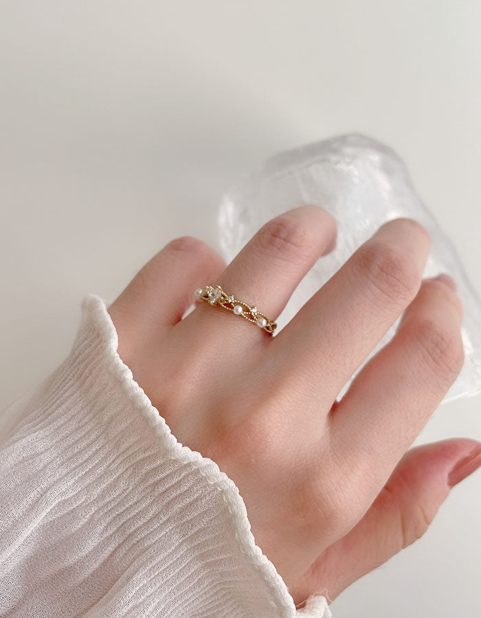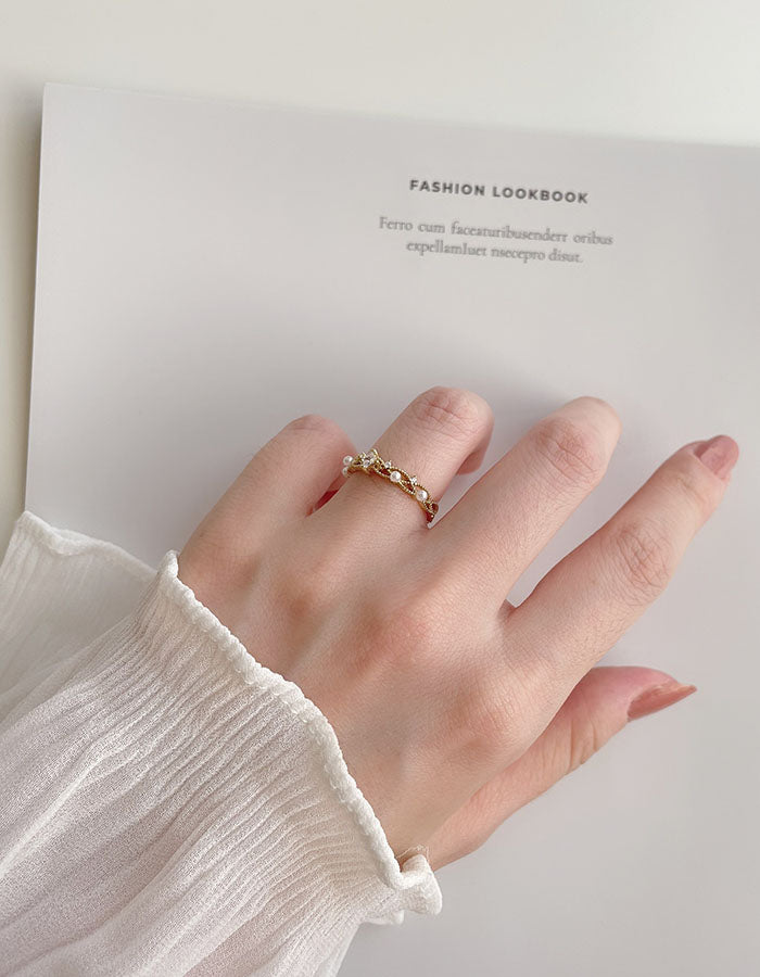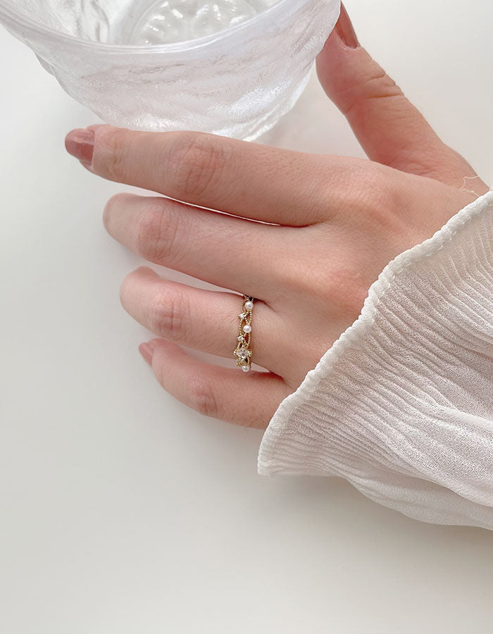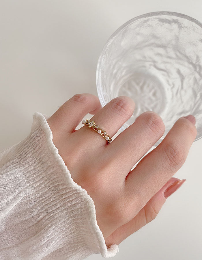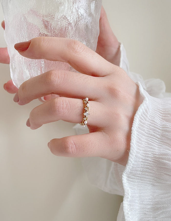 輕奢水鑽珍珠戒指
