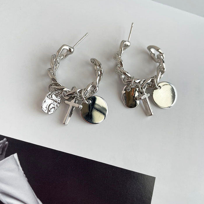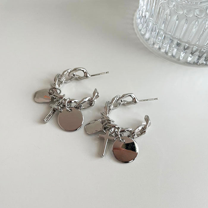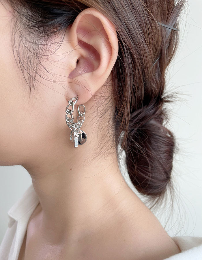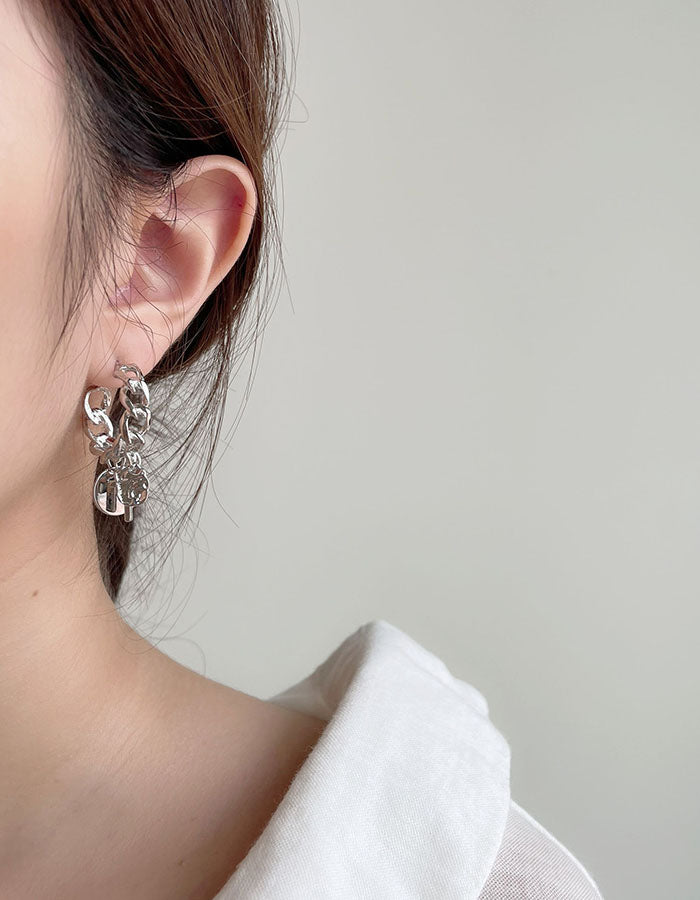 銀色鎖鏈垂墜耳環