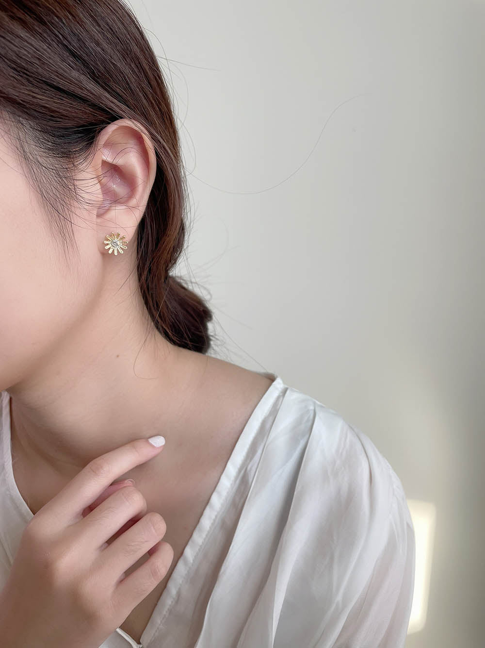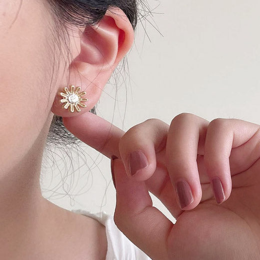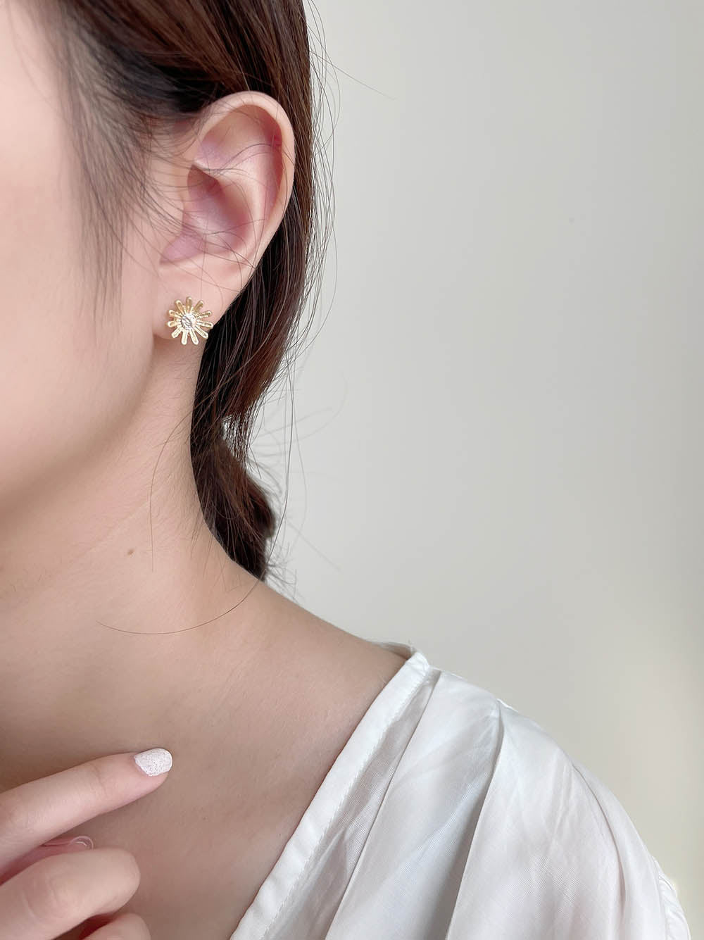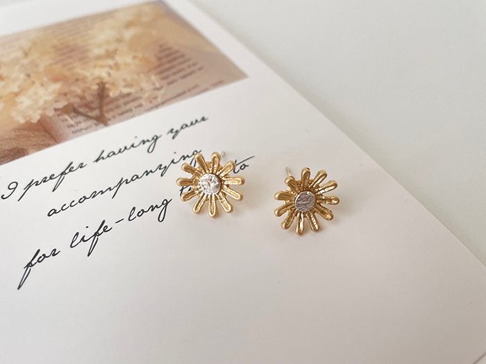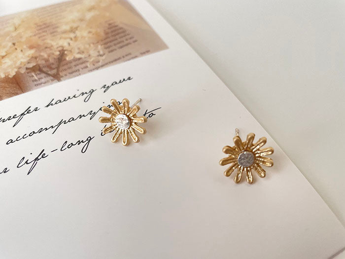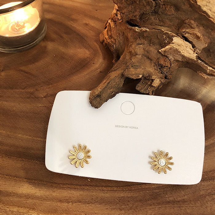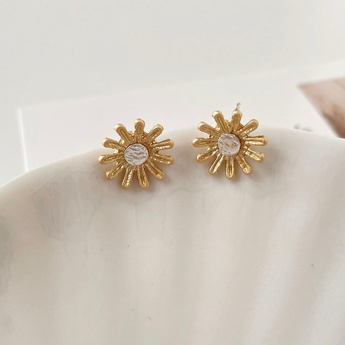 霧金小花耳環 - 925純銀針