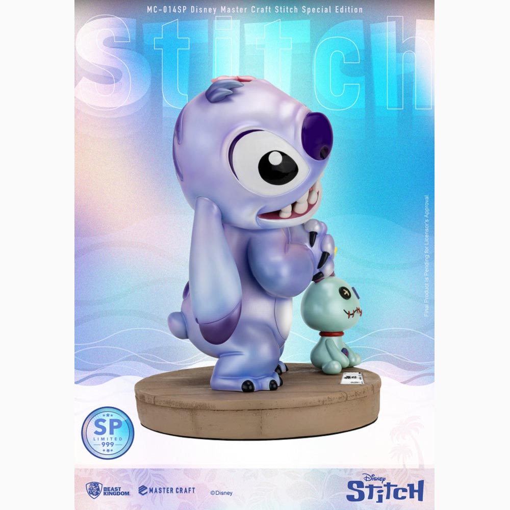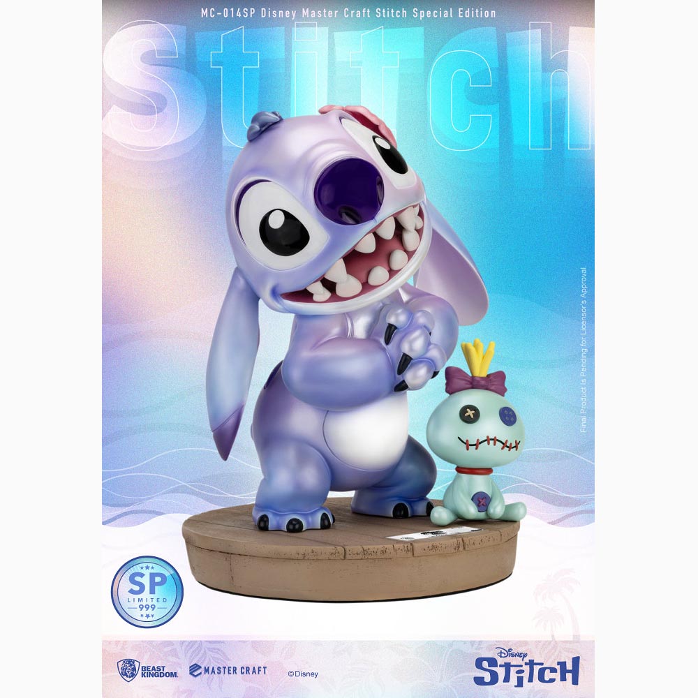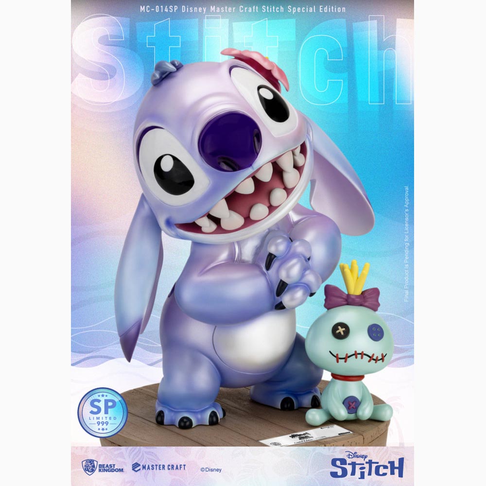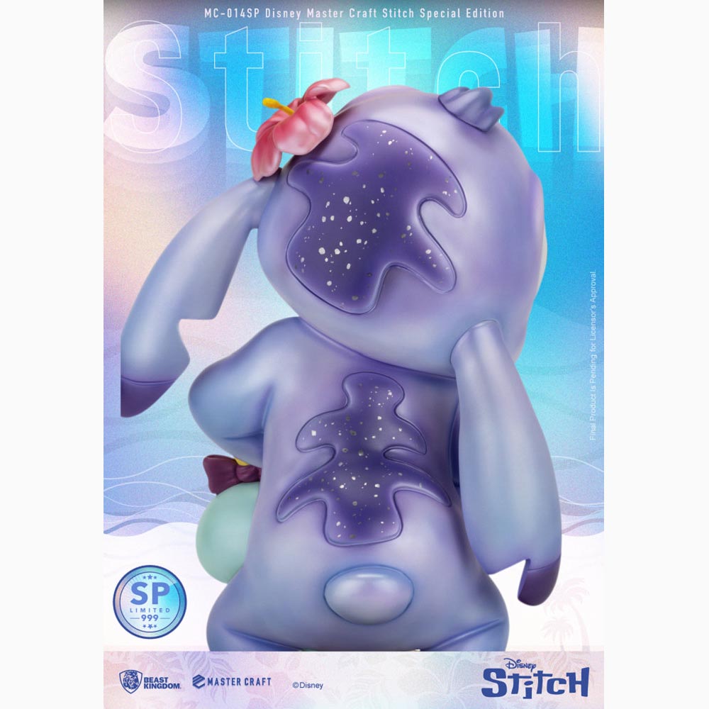 野獸國以專業3D雕塑技術完美重現這位從外太空迫降夏威夷的搗蛋鬼,從渾圓的體型到超萌的表情,無一不忠實呈現官方圖稿及經典動畫片段。特別版更採用紫色珠光煥彩塗裝,讓史迪奇的可愛升級,再搭配專業手工上色技術,將漸層、陰影及光澤細膩展現,圓滾滾的雙眼更顯水靈動人,整身33.5公分高,配有一隻12公分高的好夥伴醜娃娃,收藏再升級!! 此款特別版全球限量3000尊,並隨附獨一無二的編號鐵牌及高仿真木紋底座,絕對是每位粉絲的夢幻收藏 !