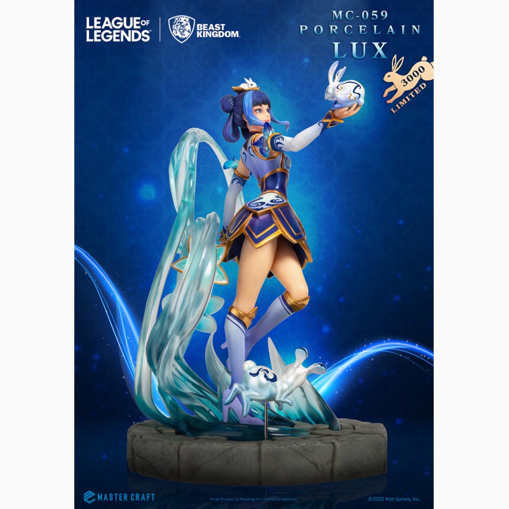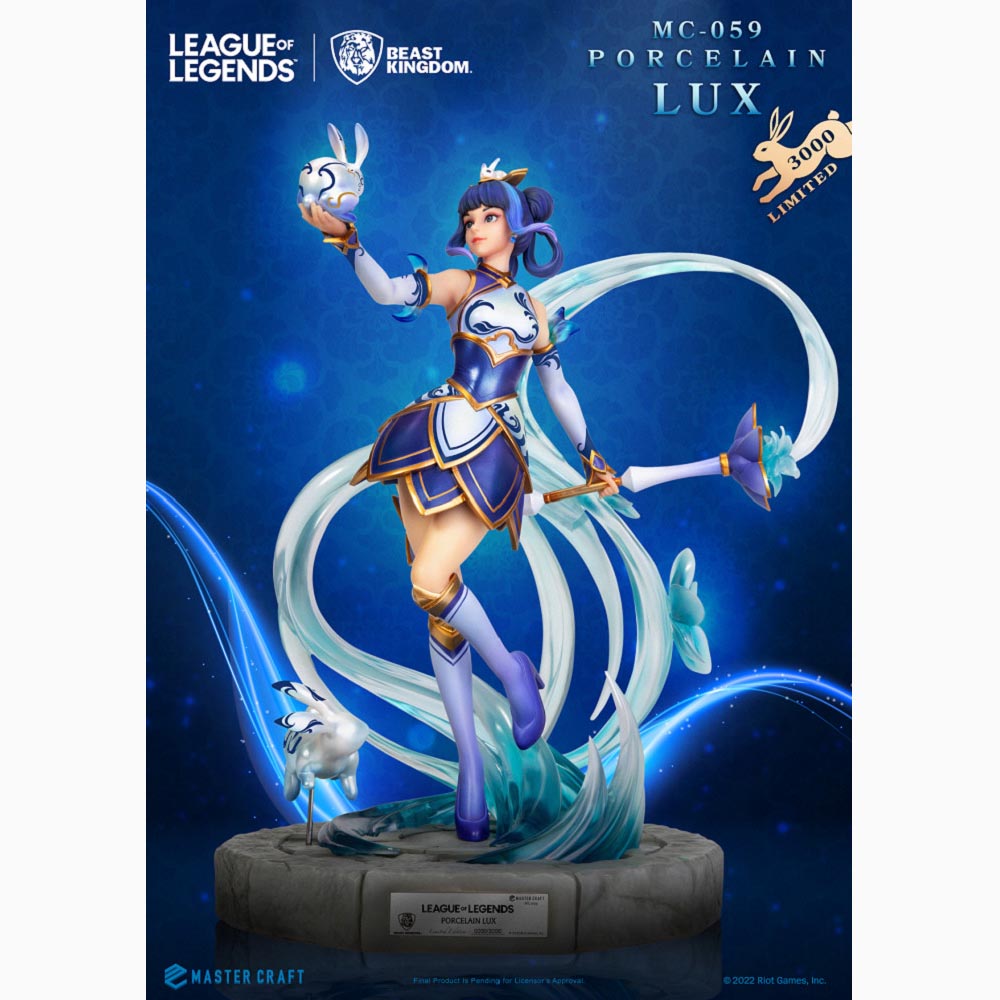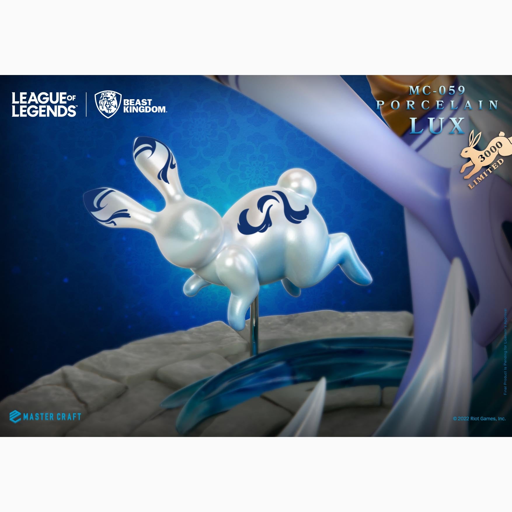《英雄聯盟》每年農曆年間都會推出多款中國風的系列造型,2023年更特別推出了「青花瓷」主題系列, 野獸國旗下高規格珍藏雕像「Master craft 極匠系列」,特挑選此次主題中的人氣角色「光之少女-拉克絲」,推出最新電玩系列收藏作品。身穿一身帶有青花瓷花紋服飾的拉克絲,手中特別外型的瓷兔(porcelain rabbit) 及換上蓮花樣式的魔杖,透過精湛的雕刻技術及專業上色技法,將人物神情、外貌與細節還原呈現。全球限量3000尊,身為英雄聯盟的忠實玩家絕不能錯過!趕緊到野獸國和拉克絲一同施展魔法吧~