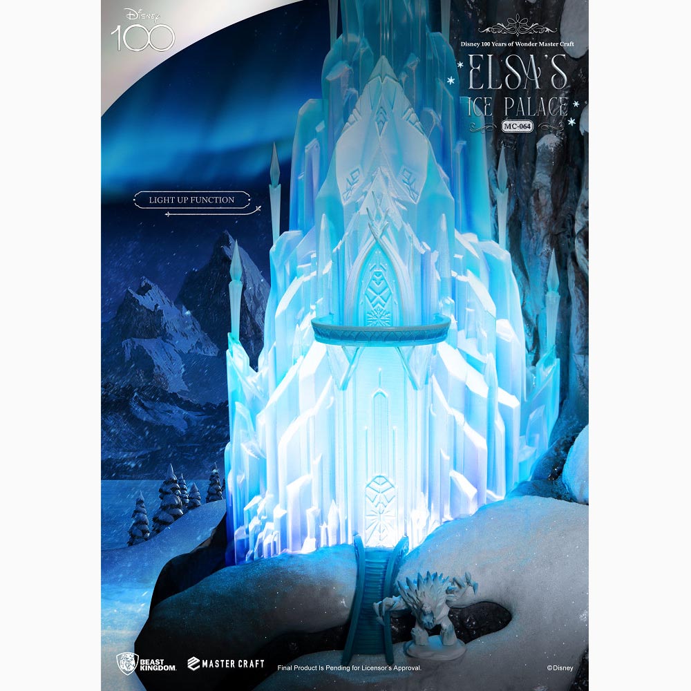 野獸國旗下的Master craft珍藏雕像,全新推出「艾莎冰宮殿」限定收藏,艾莎將壓抑已久的魔法釋放,並製作成一座華麗的冰宮殿;專業的雕塑技巧和上色工藝,細緻刻畫出冰宮雄偉的樣貌與紋路,冰宮身後的山崖也不馬虎,斑駁、細紋與滑落的積雪都完美刻畫出來,為了顯現冰宮獨特的美,內藏LED燈效果,讓粉獅們可以用不同的角度去欣賞艾莎絕美的冰宮,另外還附有一隻冰宮的守護者大雪怪;全球限量3000尊的夢幻雕像收藏,人人都該擁有一座,快跟著艾莎一起重溫《冰雪奇緣》裡的震憾片段~