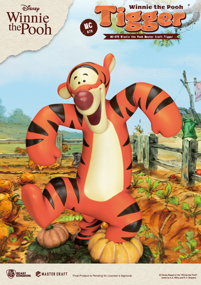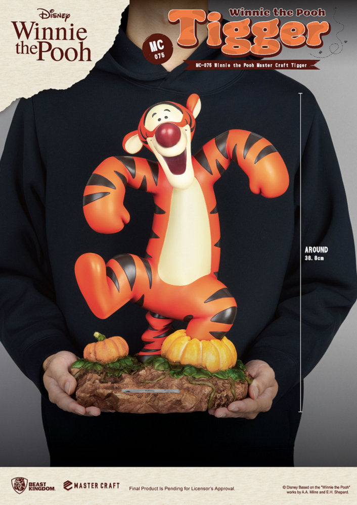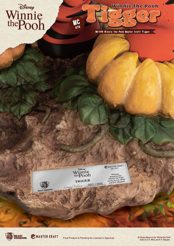 野獸國旗下的Master craft珍藏雕像帶來《小熊維尼歷險記》中最活潑好動的跳跳虎,精心設定的手工雕刻技術搭配精巧的上色技巧,還原出跳跳虎充滿活力的動態感,及鮮明的橘黑配色,準備用尾巴蹦跳的他,一腳踩進果園裡的南瓜,喬他雀躍興奮的表情,就知道今天一定有好事發生!全球限量3000隻,快讓跳跳虎成為你每天快樂的泉源。