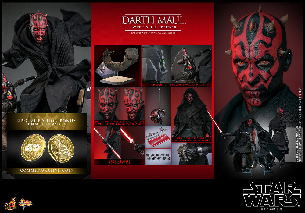 身為扎布拉克(Zabrak)族的一員,達斯·魔有著相當奇特的外表,除了有鮮紅的皮膚,頭上還長出看起來超兇暴的犄角相當帥氣,他也擁有強悍的實力和堅忍的生命力,招牌武器為充滿狂氣的雙刃光劍,他不但殺死絕地大師「魁剛·金」,被歐比王腰斬之後也沒有死亡,而是裝上蜘蛛型的義肢,存活在偏遠的星球,過了非常久才被同族的「薩瓦其」(Savage Opress)找到;曾多次在動畫作品《星際大戰:複製人之戰》、《星際大戰:反抗軍起義》中現身,是一位永遠的復仇者。Hot Toys 為紀念《星際大戰首部曲:威脅潛伏》25 週年而重新推出達斯魔